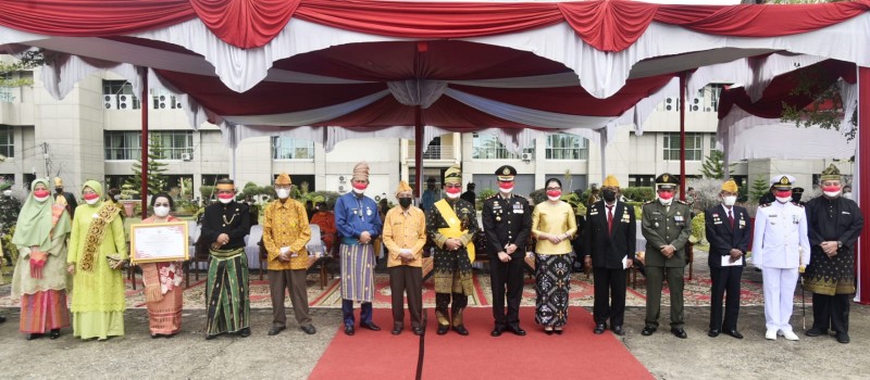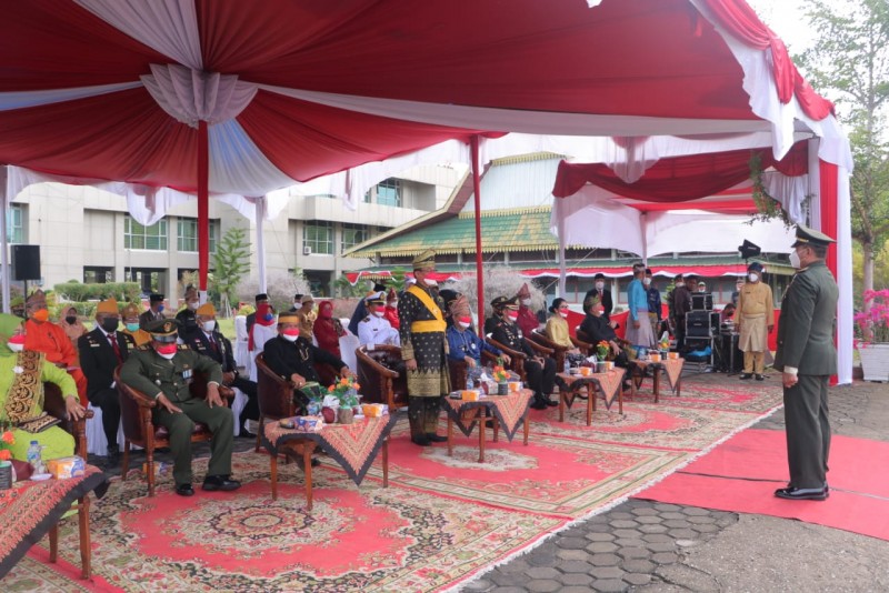 Upacara pagi itu berlangsung khidmat dengan tetap mematuhi protokol kesehatan Covid-19.