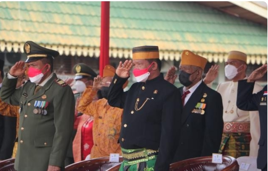Iniriau.com, TEMBILAHAN - Wakil Ketua Dewan Perwakilan Rakyat Daerah (DPRD) Kabupaten Indragiri Hilir (Inhil), Andi Rusli menghadiri upacara peringatan Hari Ulang Tahun RI ke-76 tahun 2021. Bertindak selaku inspektur upacara HUT RI ke-76 Bupati Inhil, HM Wardan di Lapangan Gadjah Mada Tembilahan, Selasa (17/8/2021).