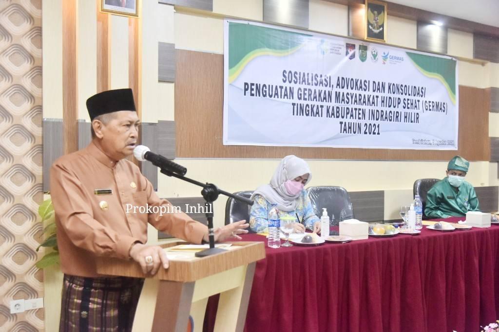 Iniriau.com, TEMBILAHAN - Wakil Bupati Kabupaten Indragiri Hilir H.Syamsuddin Uti membuka Sosialisasi, Advokasi dan Konsolidasi penguatan Gerakan Masyarakat Hidup Sehat (Germas) tingkat Kabupaten TH 2021, Kamis (5/7/2021) di Aula Hotel Harmoni Tembilahan.
