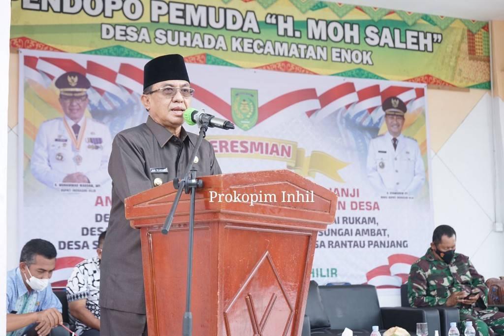 Iniriau.com, SUHADA - Bupati Indragiri Hilir Drs.H.M.Wardan, Resmikan Anggota Badan Permusyawaratan Desa (BPD) Kecamatan Enok Masa Bhakti 2021 - 2027 serta pengambilan sumpah Janji Anggota BPD di Desa Suhada Kecamatan Enok, Kamis (9/9/2021) siang.