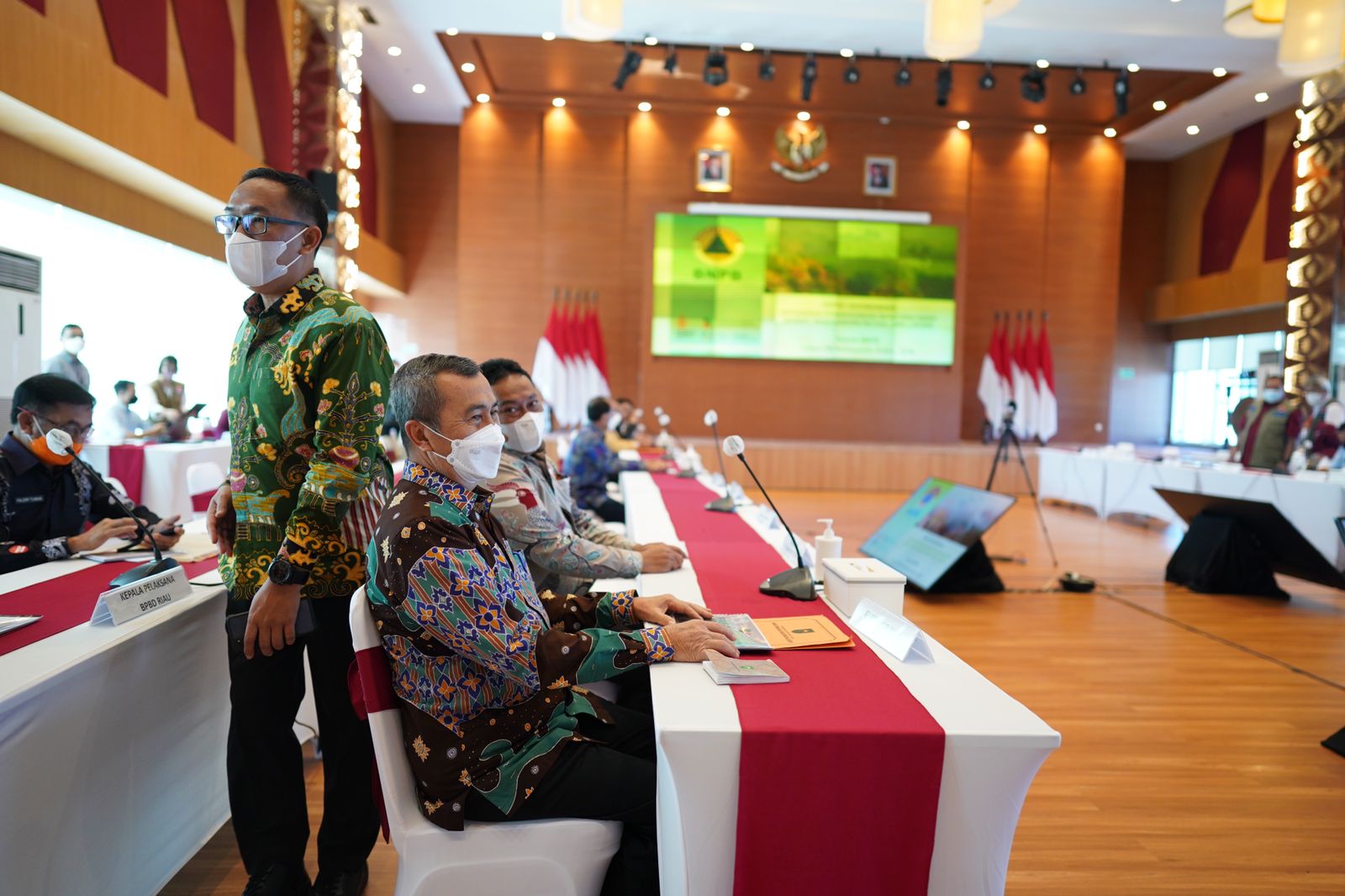 Dari Rakor Antisipasi Penanganan Karhutla du Graha BNPB diketahui Riau termasuk tiga daerah yang turun signifikan angka karhutlanya .(foto: humas)