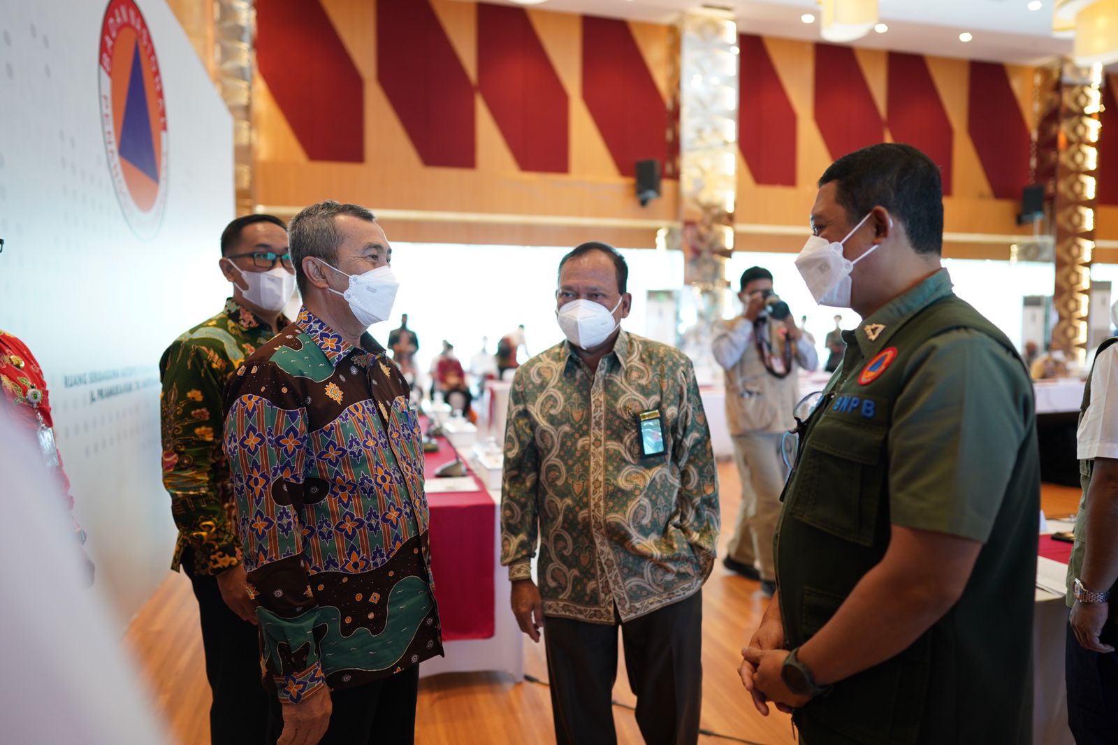 Gubri Syamsuar (baju batik) terlihat serius mendengar pemaparan Kepala BNPB Suharyanto. (foto:ist)