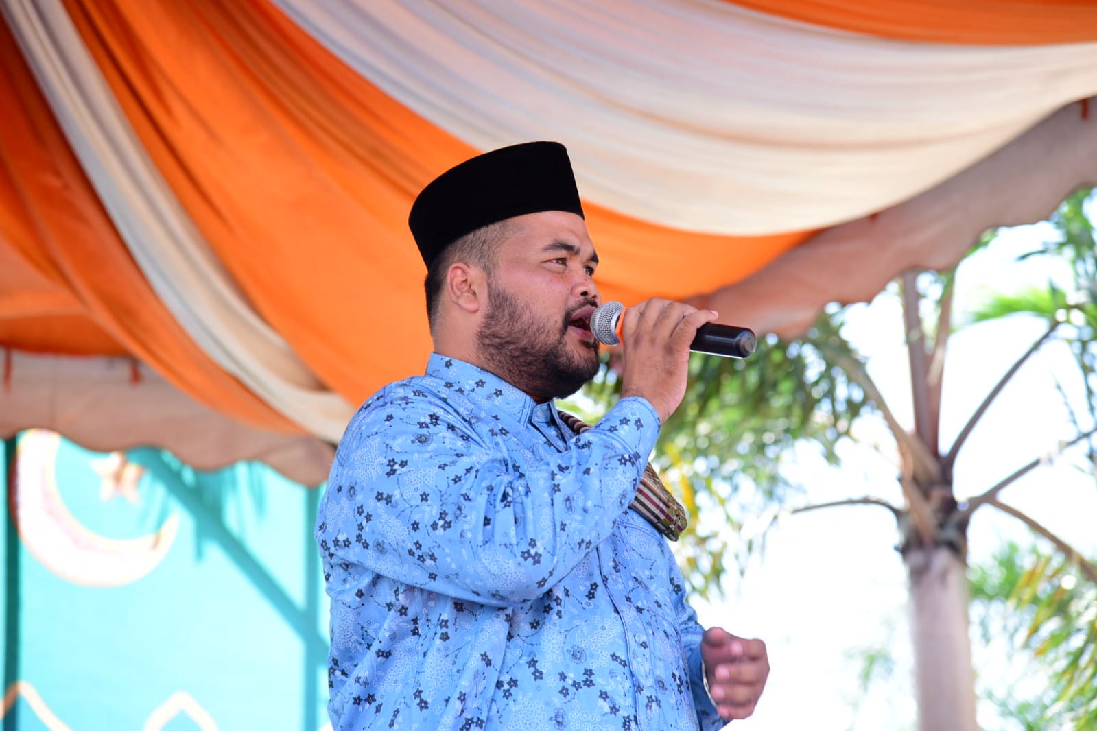 Ustadz Abdul Muhadir, M.Ag menyampaikan tausiyah dalam acara halal bihalal yang digelar Pemda Bengkalis. (Foto : Rudi)