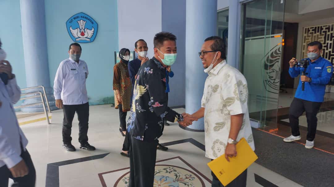 Bupati Rohil Afrizal Sintong (baju batik) berkunjung ke Universitas Riau, dan disambut pada pejabat UR.(Foto : ist)