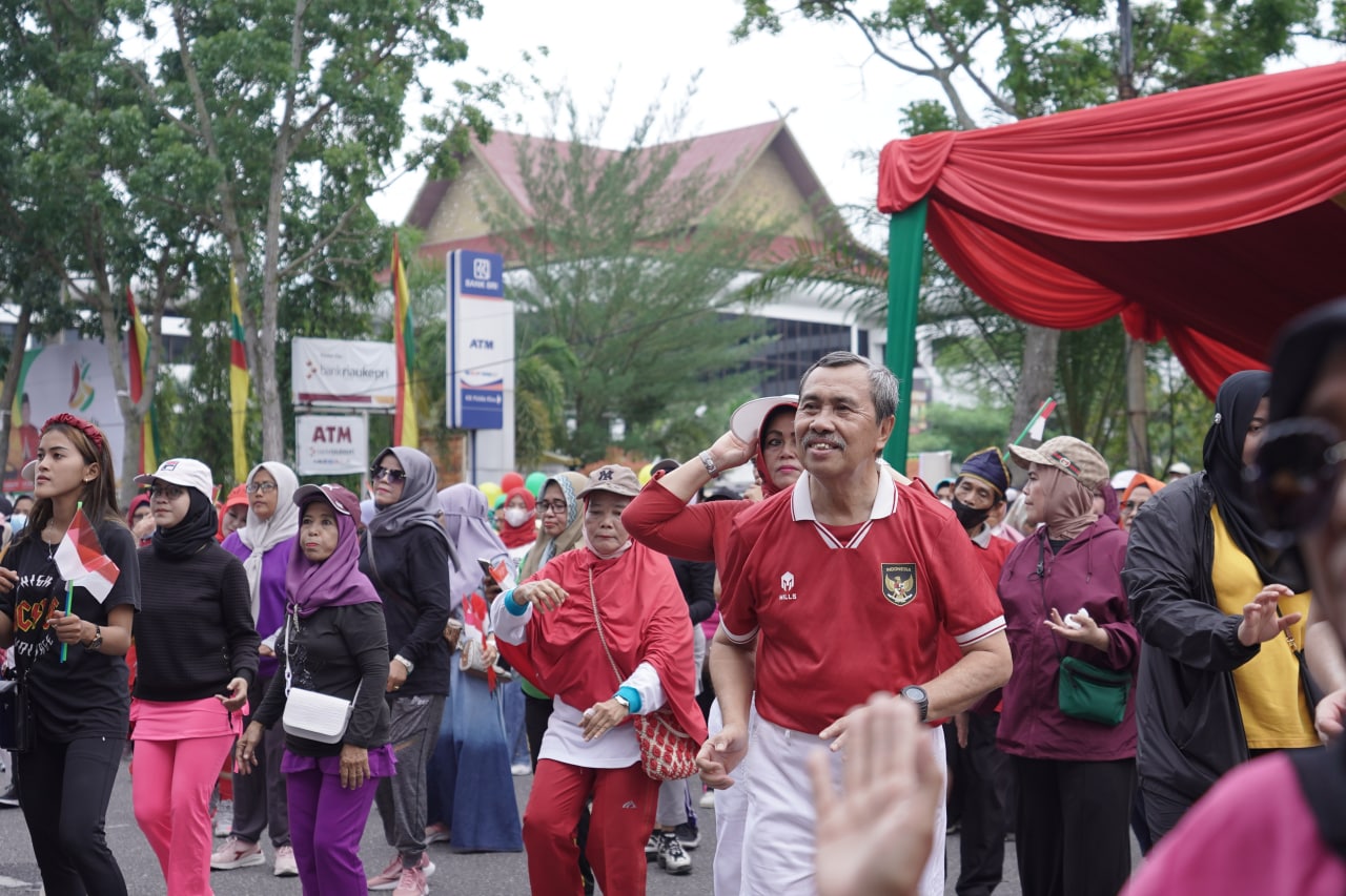 iniriau.com,PEKANBARU - Dalam rangka menyemarakkan peringatan Hari Jadi ke 65 Provinsi Riau juga sekaligus menyambut HUT Kemerdekaan RI, Gubernur Riau (Gubri) Syamsuar mengikuti senam massal bersama masyarakat Riau, berlangsung di Jalan Gajahmada Pekanbaru, Ahad (7/8/2022).