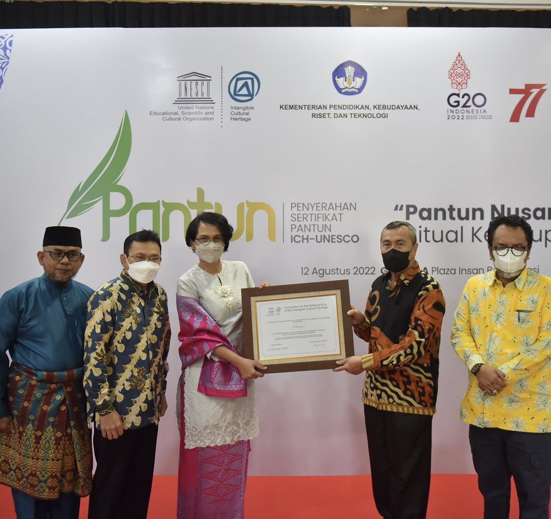 "Alhamdulillah, kita mengucapkan terima kasih kepada UNESCO yang telah menetapkan pantun sebagai WBTb dan hari ini kita terima sertifikatnya," kata Gubri Syamsuar.
