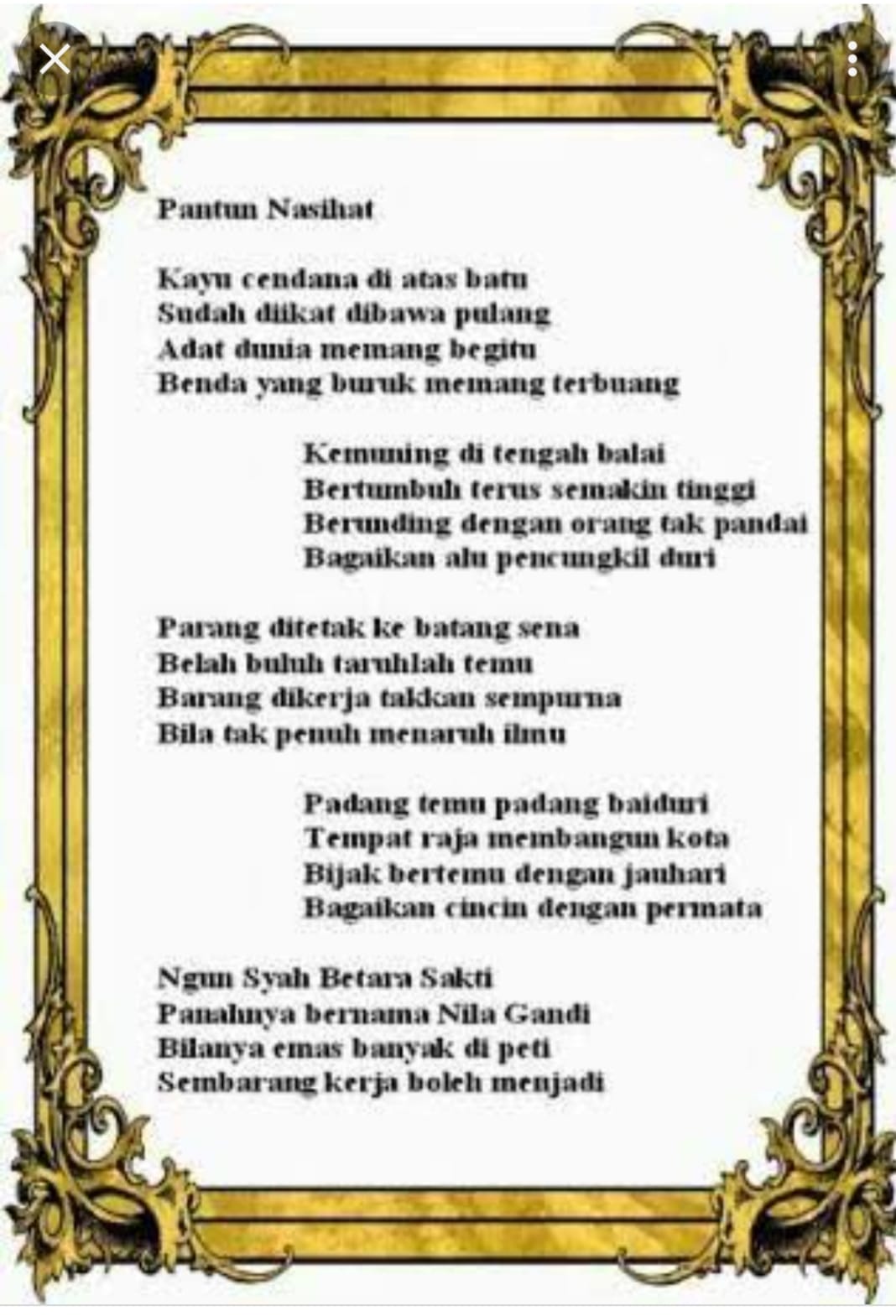 (Salah satu pantun melayu, yang merupakan tradisi khas orang melayu dalam memberikan petuah). (Foto:ist)