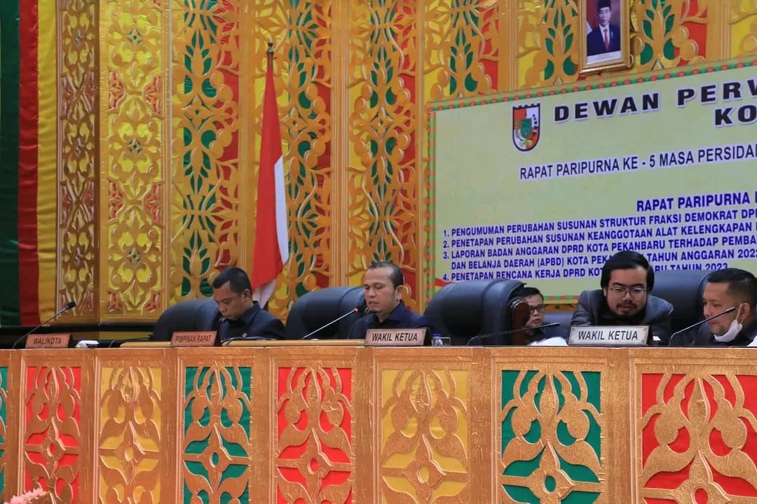 Rapat paripurna ke-5 masa sidang kesatu tahun 2022/2023 ini dipimpin langsung oleh Ketua DPRD Pekanbaru Muhammad Sabarudi ST didampingi Wakil Ketua DPRD Pekanbaru lainnya Ginda Burnama ST, Tengku Azwendi Fajri SE dan Ir Nofrizal MM. Rapat ini juga dihadiri Penjabat (Pj) Walikota Pekanbaru Muflihun beserta Sekretaris Daerah (Sekda) Kota Pekanbaru Muhammad Jamil, Asisten, Kepala OPD, Camat dan Forkopimda.