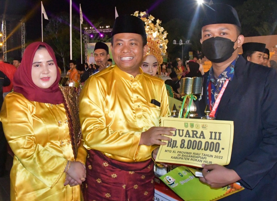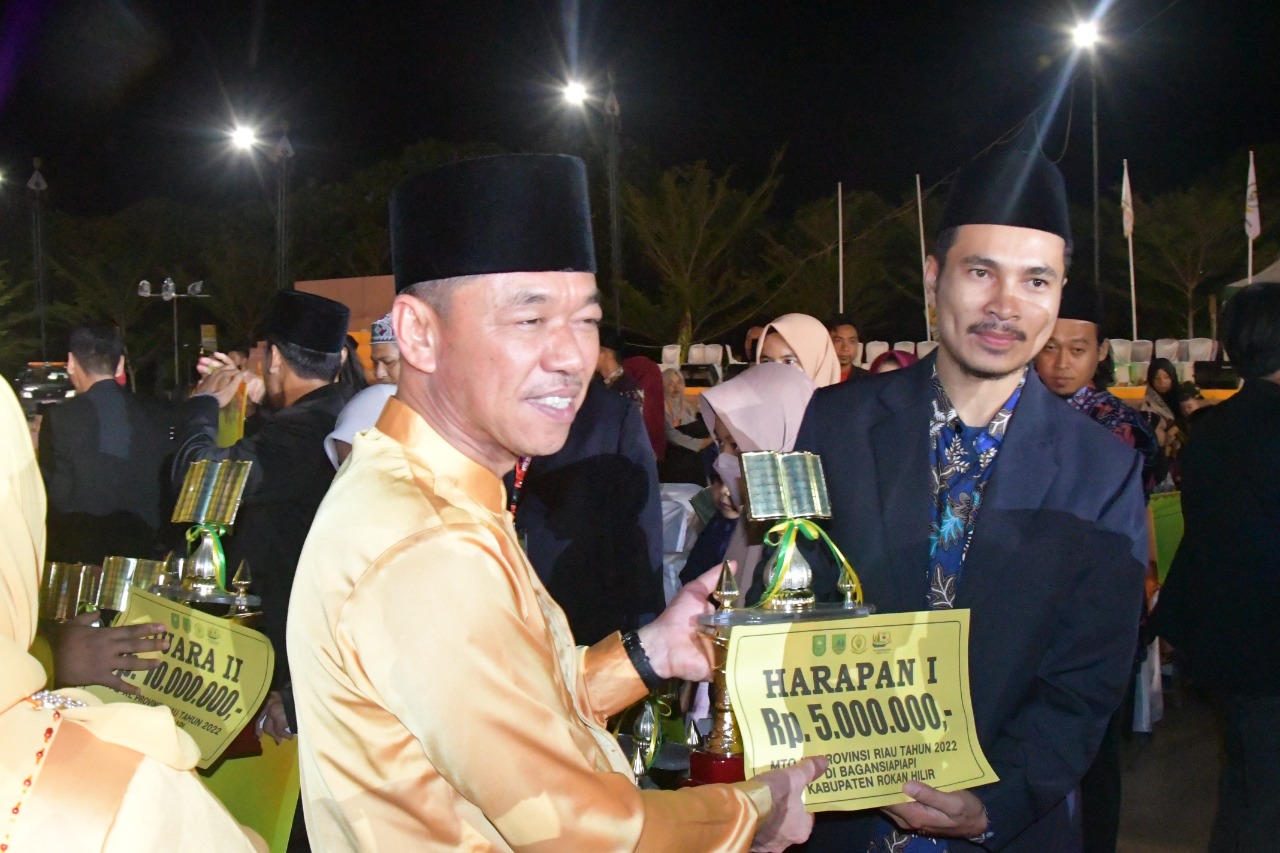 Kontingen Rohil pun berhak atas trofi bergilir yang diserahkan langsung Wakil Gubernur Riau Edy Natar kepada Bupati Rohil Afrizal Sintong didampingi Wabup H Sulaiman, dewan hakim, dan sejumlah pihak. "Untuk juara umum MTQ Riau tahun 2022 adalah Kabupaten Rohil," seru dewan hakim membacakan SK yang ditandatangani Ketua Dewan Hakim Mahyudin MA.