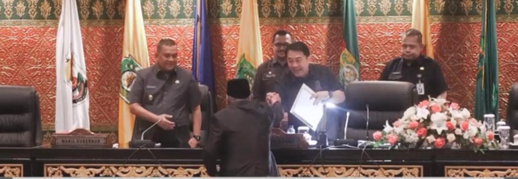 Dalam kesempatan ini, penyampaian jawaban gubernur atas pandangan umum Fraksi terhadap Ranperda tentang APBD Provinsi Riau Tahun Anggaran 2023, disampaikan oleh Wakil Gubernur Riau Edy Natar Nasution.