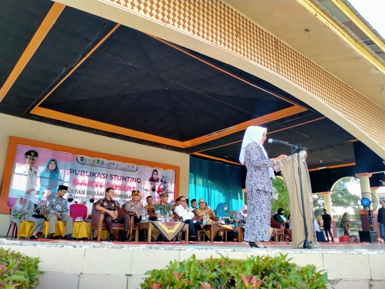 iniriau.com,INHIL - Bersempena peringatan Hari Kesehatan Nasional ke -58 Ikatan Bidan Indonesia (IBI) Kabupaten Indragiri Hilir (Inhil) melaksanakan Publikasi Stunting Bakti Sosial di Lapangan Gajah Mada, Senin (28/11/2022).
