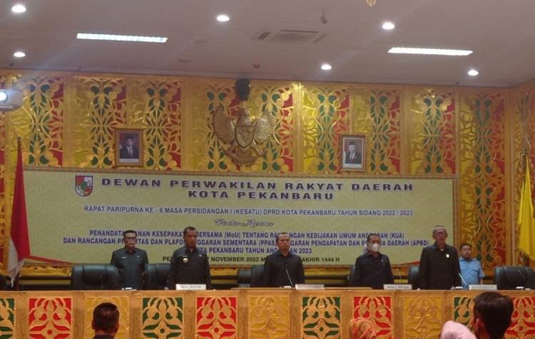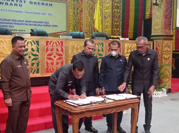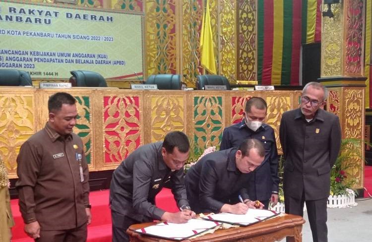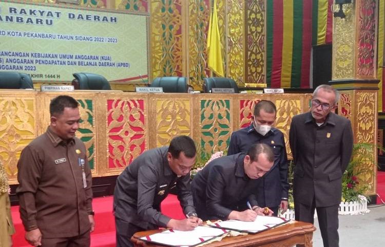 DPRD Kota Pekanbaru bersama Penjabat (Pj) Walikota Pekanbaru Muflihun menandatangani kesepakatan APBD Kota Pekanbaru Tahun Anggaran 2023 sebesar Rp 2,699 Triliun. Jumlah ini mengalami kenaikan dibandingkan dengan APBD murni tahun 2022 senilai Rp 2,560 Triliun.