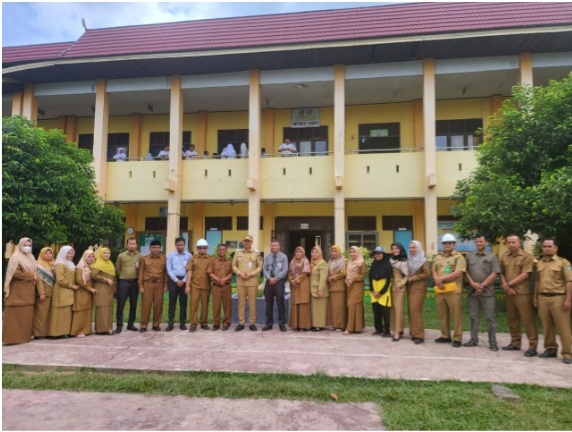 Peninjauan tersebut dihadiri Pimpinan Cabang Bank Riau Kepri Syariah Rokan Hulu yang baru Andy Gunawan SE, Kepala SMPN 01 Irwan SPD, Kontraktor Jhon Kenedi dan lainnya.