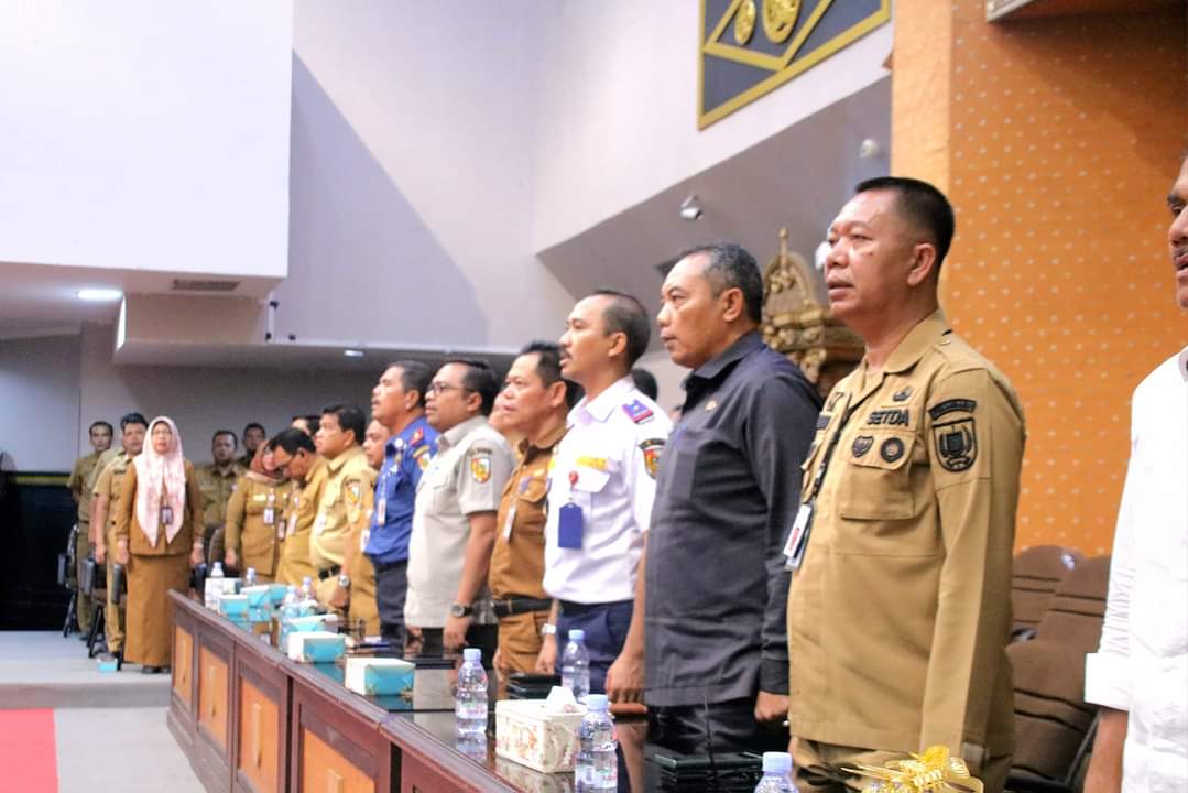 Rapat ini juga dihadiri Pj Walikota Pekanbaru Muflihun diikuti Sekdako Pekanbaru Indra Pomi Nasution, Asisten, Kepala OPD, Staf Ahli, Camat serta Forkopimda.