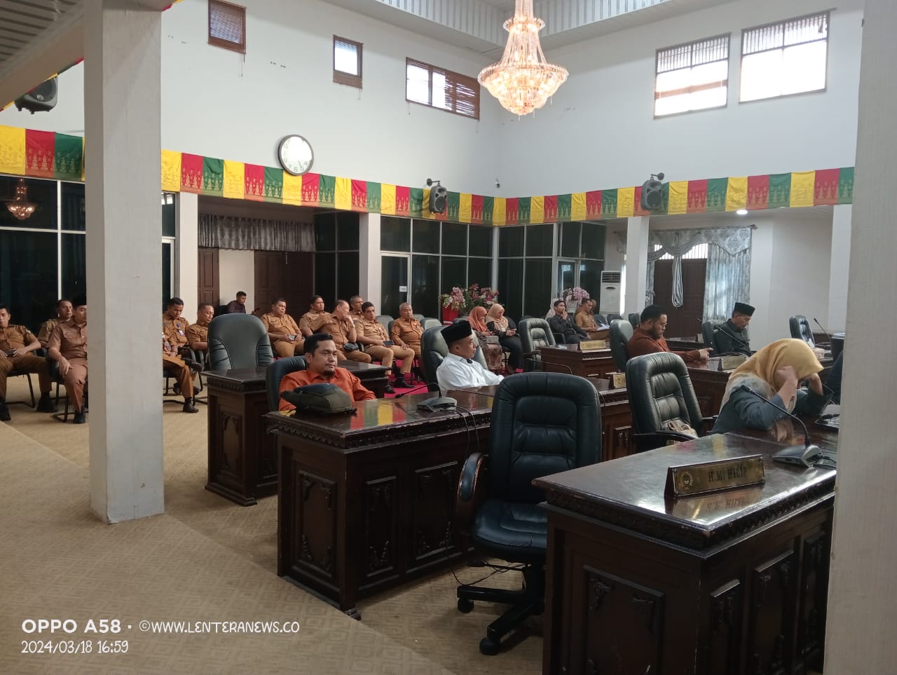 Terpantau, Bupati Rohul menyerahkan Dokumen Laporan LKPj Bupati Tahun 2023 kepada Pimpinan DPRD,  dilanjutkan dengan Rapat Paripurna pandangan Fraksi tentang Penyampaian LKPJ Bupati.(Galeri)