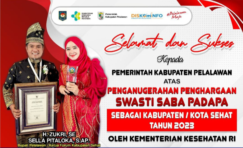 Tak hanya itu saja, Pemerintah Kabupaten Pelalawan juga meraih penghargaan predikat Swasta Saba Padapa pada tahun 2023 lalu. Penghargaan ini diserahkan langsung oleh Menteri Kesehatan RI Budi Gunadi Sadikin kepada Bupati Pelalawan H. Zukri didampingi istri Sella Pitaloka, S.Ap, Selasa (28/11/2023) di Jakarta.