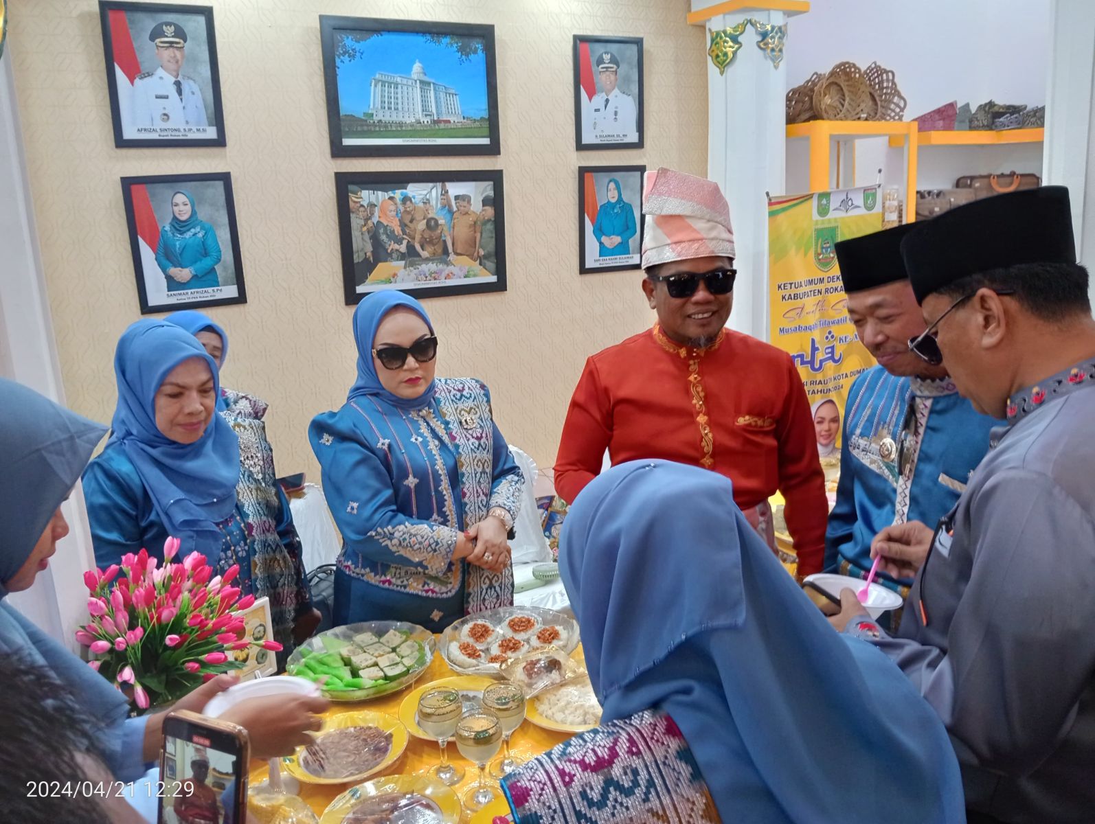 Pada acara pembukaan stand bazar, Ketua TP PKK Rohil Ny. Sanimar Afrizal beserta anggota menyajikan berbagai hidangan berupa makanan dan minuman segar untuk di cicipi setiap pengunjung. Selain itu Ketua TP PKK Rohil juga memberikan buket kacang pukul kepada Ketua TP PKK Kabupaten/ Kota yang berkunjung ke stand bazar Rohil.