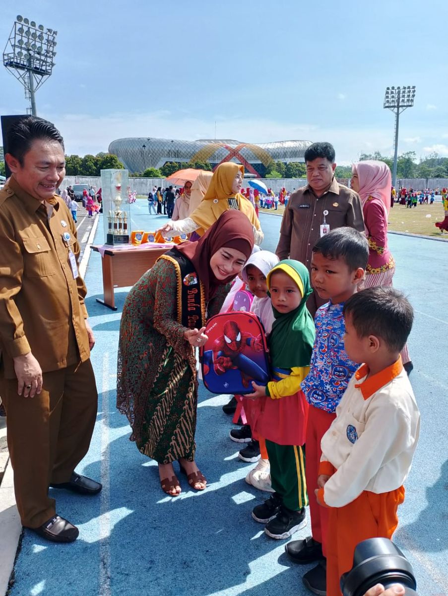 Kabid PAUD dan PNF Disdik Pekanbaru Reni Bafita SSos mengapresiasi panitia meriahnya acara dengan ribuan jumlah peserta.