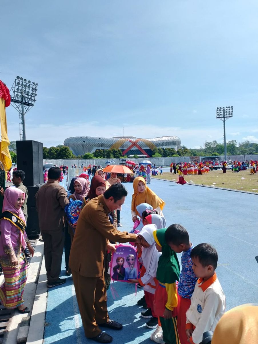 Acara yang diikuti ribuan peserta didik Taman Kanak-kanak ini berlangsung di GOR Atlet Sport Center Rumbai, Selasa (30/4/2024).