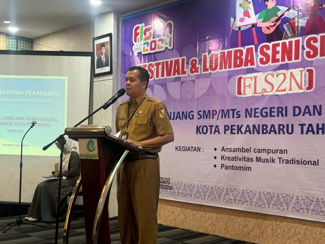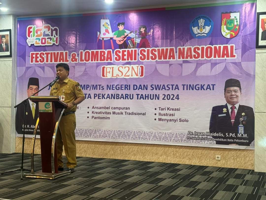 Iniriau.com, Pekanbaru - Dinas Pendidikan Kota Pekanbaru menggelar Festival dan Lomba Seni Siswa Nasional (FLS2N) jenjang SMP/MTS Negeri dan Swasta Tingkat Kota Pekanbaru Tahun 2024 yang bertempat di Hotel Evo Pekanbaru, Selasa (7/5/2024).