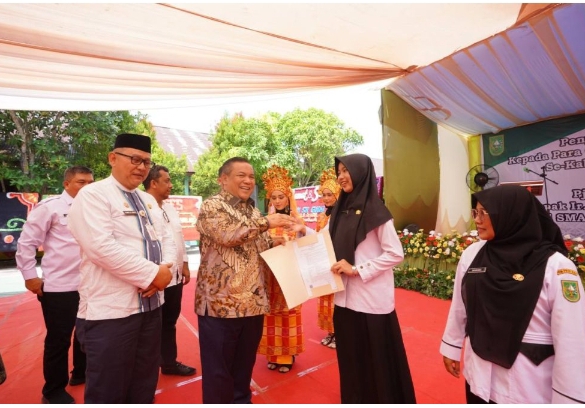 iniriau.com, ROHIL - Sebanyak 173 Surat Keputusan (SK) Pegawai Pemerintah dengan Perjanjian Kerja (PPPK) diserahkan kepada tenaga pendidik SMA/SMK/SLB di lingkup Pemerintah Provinsi (Pemprov) Riau wilayah kerja Kabupaten Rokan Hilir. Penyerahan SK PPPK diserahkan langsung oleh Penjabat (Pj) Gubernur Riau (Gubri), SF Hariyanto di SMAN 2 Tanah Putih Ujung Tanjung, Jumat (26/7/2024).