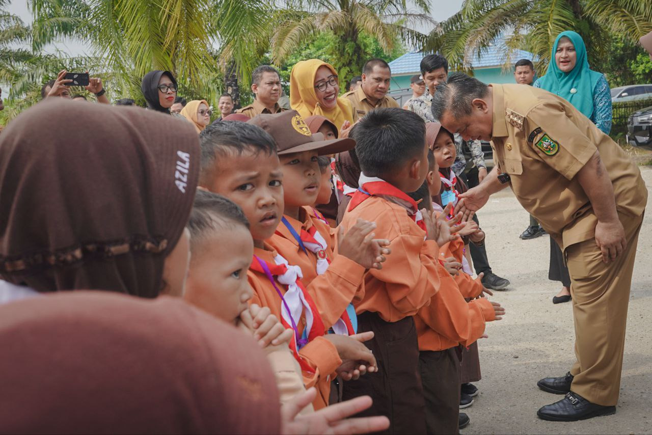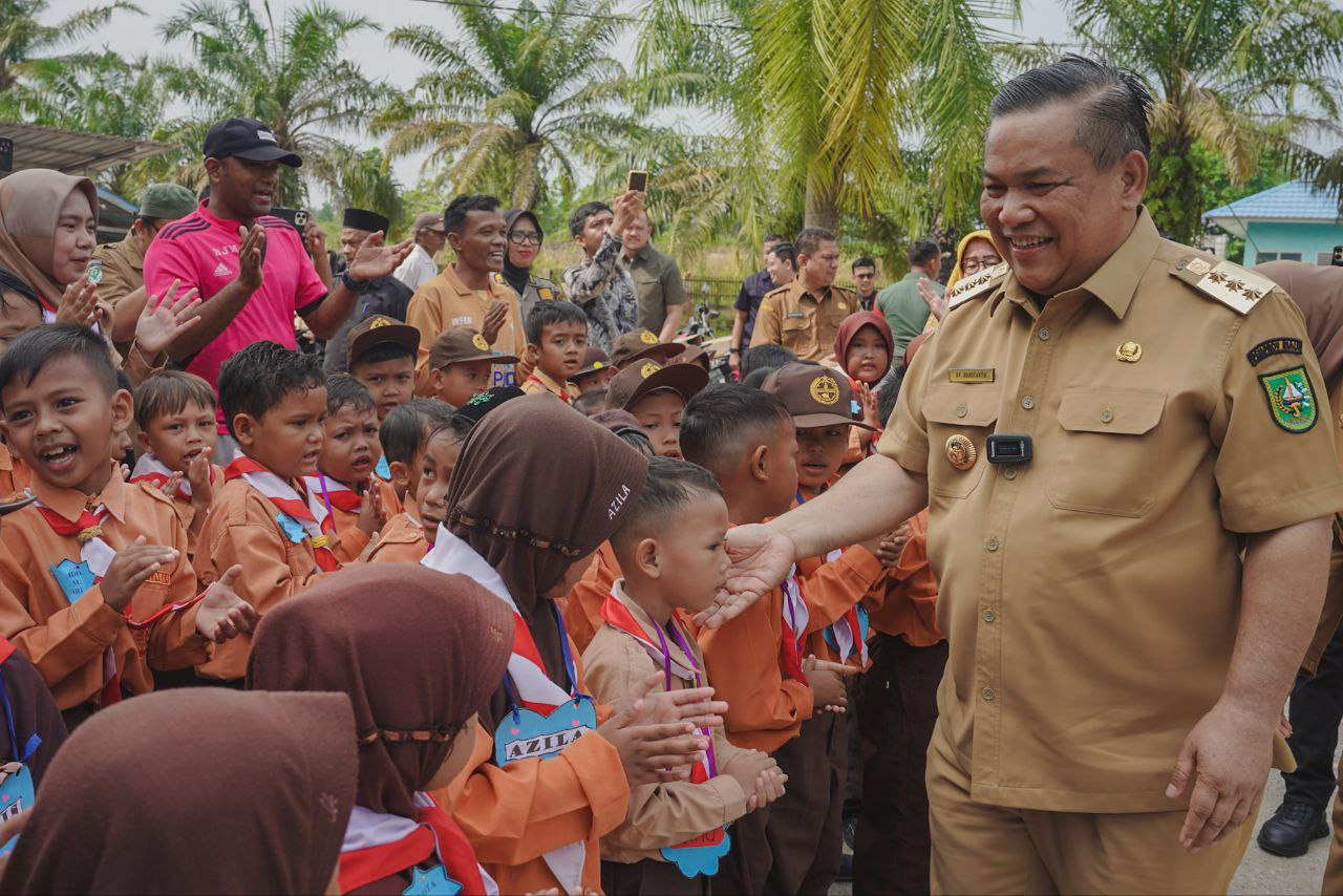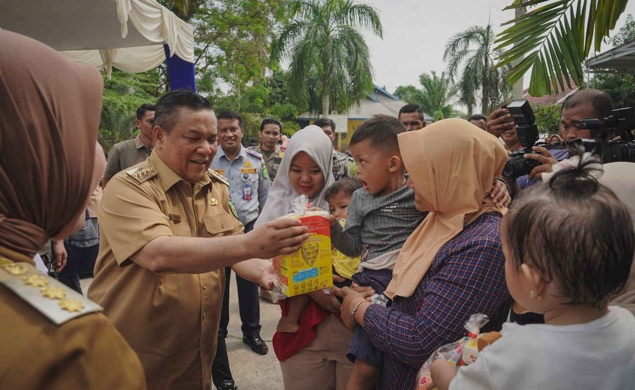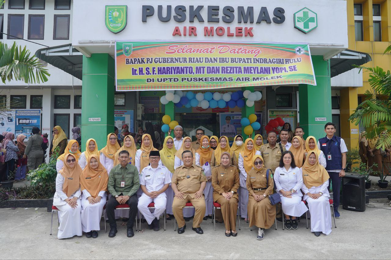 iniriau.cok, INHU - Penjabat (Pj) Gubernur Riau (Gubri), SF Hariyanto meninjau langsung Pekan Imunisasi Nasional (PIN) Polio di Posyandu Air Molek, Kabupaten Indragiri Hulu (Inhu), Selasa (23/7/2024). Ia bersama Bupati Inhu, Rezita Meylani Yopi memberikan vaksin imunisasi tetes kepada beberapa anak di Posyandu tersebut.