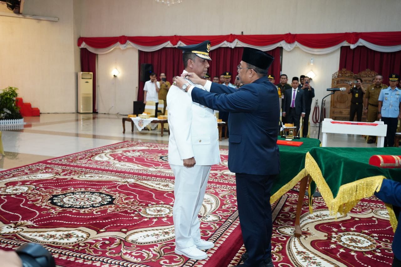 iniriau.com, PEKANBARU - Penjabat (Pj) Gubernur Riau (Gubri) Rahman Hadi lantik Roni Rakhmat sebagai Pj Wali Kota Pekanbaru, Selasa (3/12/24). Prosesi pelantikan digelar di Balai Serindit Gedung Daerah, Jalan Diponegoro Pekanbaru.
