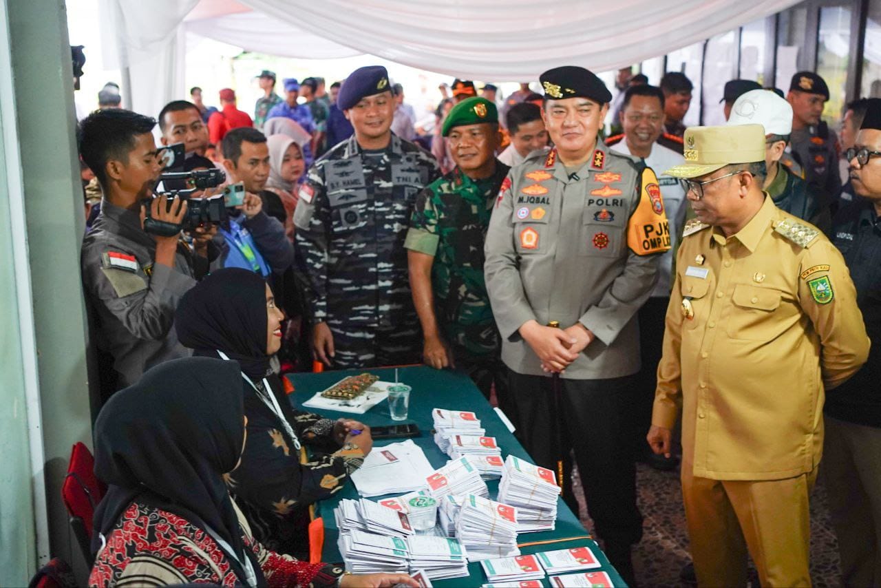 "Pagi hari ini, Forkopimda dikomandani Pak Kapolda, kita bersama melihat TPS dalam rangka pemungutan suara. Kita lihat kecukupan suaranya kemudian kelengkapan lainnya," ujar Pj Gubri.