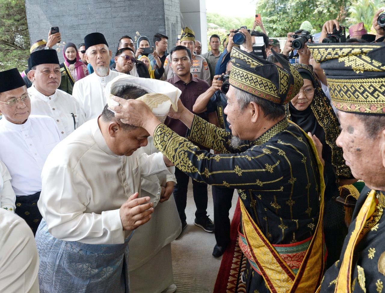 Momen itu terasa emosional. Gubri Wahid tampak haru ketika menerima tepung tawar dari para tokoh adat. Ia menyadari bahwa prosesi ini bukan sekadar seremonial, tetapi simbol restu dari masyarakat adat untuk menjalankan amanah dengan sebaik-baiknya.